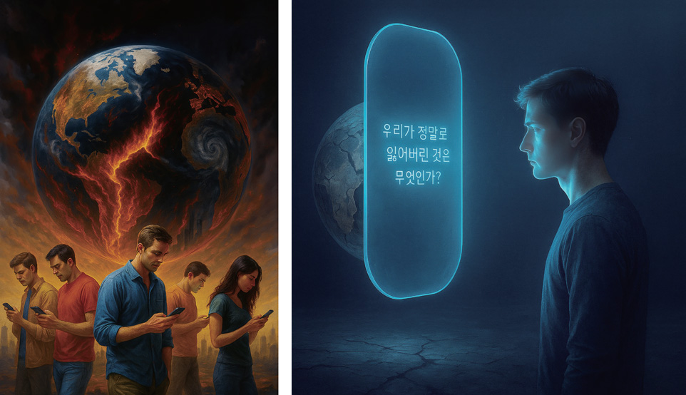 요즘 뉴스만 보면 인류의 생존이 위험하다고들 하잖아요. 그런데 이상하게… 무섭다기보다, 그냥 무력해요. 혹시 우리가 잃어버린 건 기후가 아니라, 감각 아닐까요?