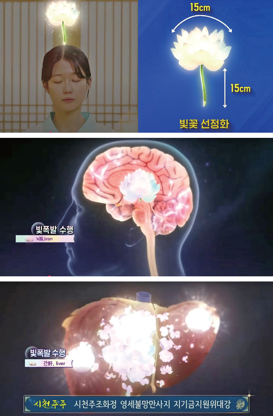 한 송이 꽃이 돼서 빛 폭발을 강력하게 하는 모습을 찍은 영상 사진 하나를 딱 놓고 그 모습을 마치 직접 보는 것처럼 수행하면 훨씬 잘됩니다.
